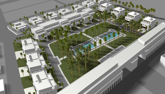 All residential buildings are three stories high while the mixed use complex is four stories. One of the main attractions of this design is the peaceful oasis centrally located, which comprises a children’s playground and a water feature. The residential units are planned so that their gardens, terraces and balconies are grouped around the oasis.