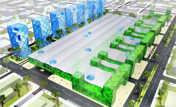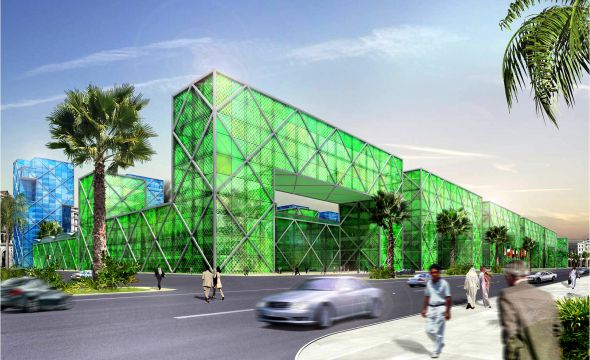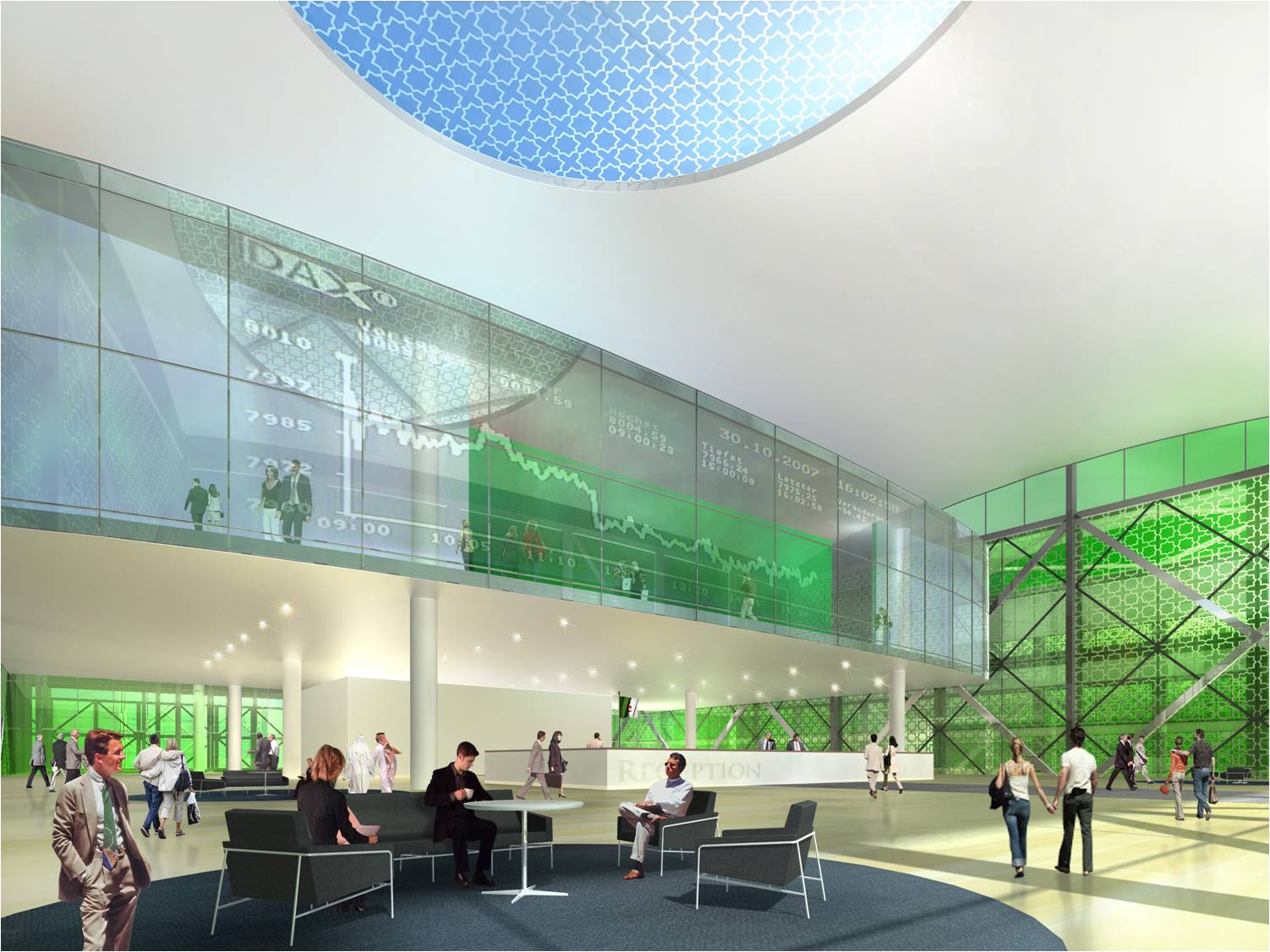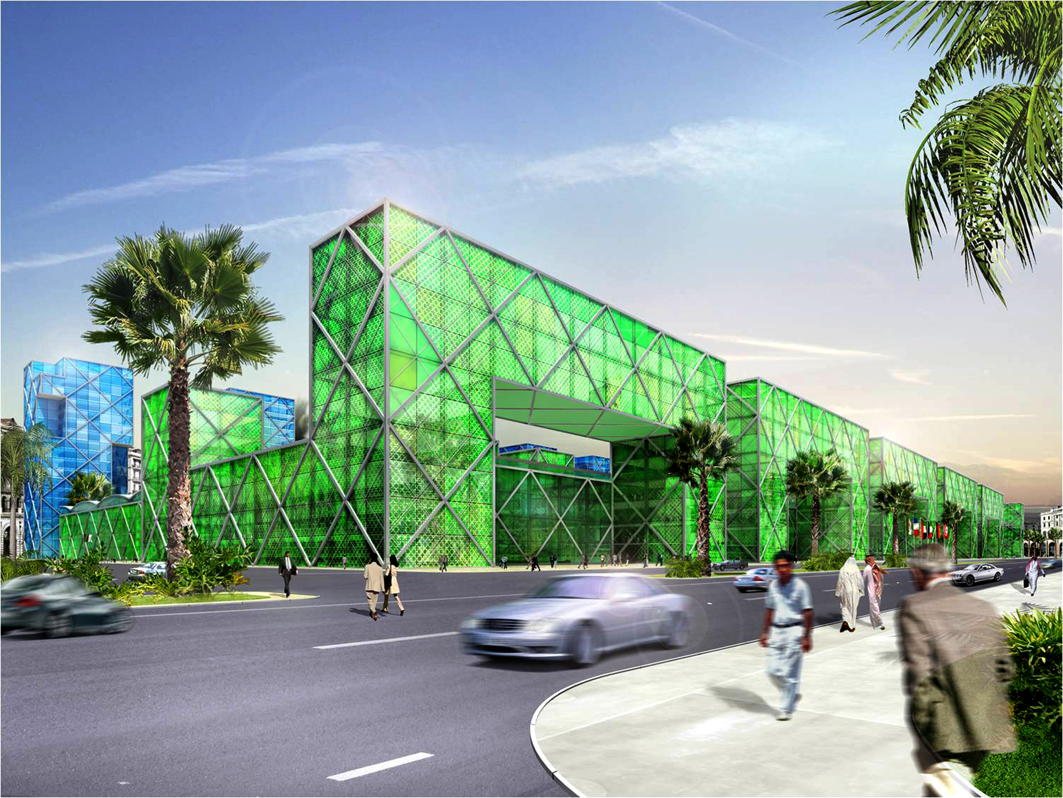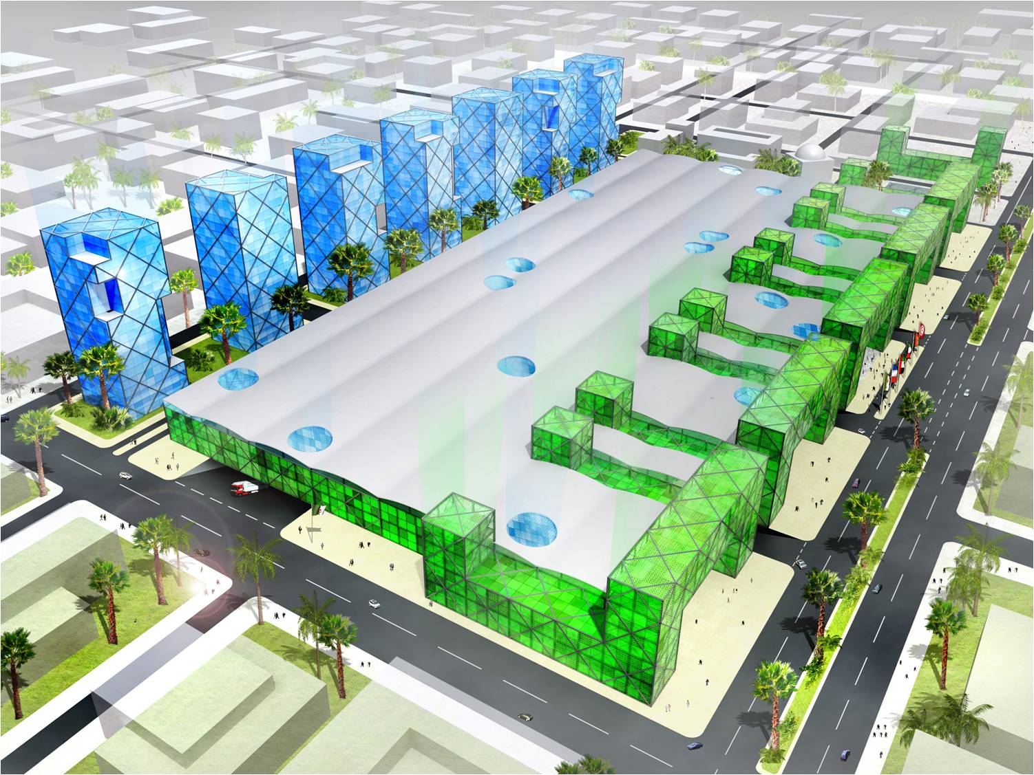 The Financial Trade Centre occupies an urban block in the heart of the city of Algiers. The actual site is completely built-up; however it is possible to move comfortably through the block at ground floor level, as the surrounding streets are continued within the building and lead the visitor through a covered bazaar with generous skylights.