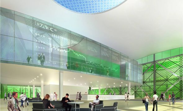 Urban interventions are introduced on either side of the „City Island“. On one side a series of towers creates a backdrop for the entire complex to make a powerful symbolic statement in the cityscape. On the other side large gateway structures mark the entrances to the Financial Trade Center. The covered public space links both sides of the complex.