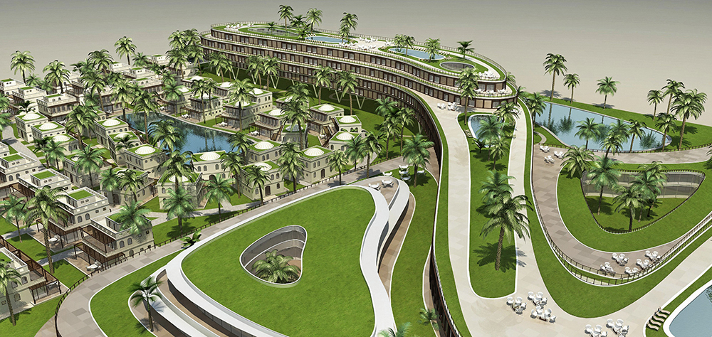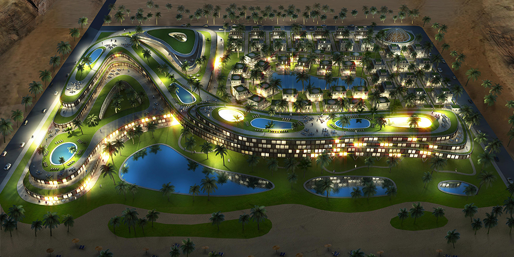 This mixed use development is aimed at educating its inhabitants and visitors to the importance of the threatened turtle and general sea life by offering oceanic opportunities such as kite surfing, diving, snorkeling, dolphin/turtle/ whale watching and fishing on local Omani boats. The organic design maximizes views and reflects its surroundings. Highlights include exquisite seafood restaurants and a centrally located turtle museum.