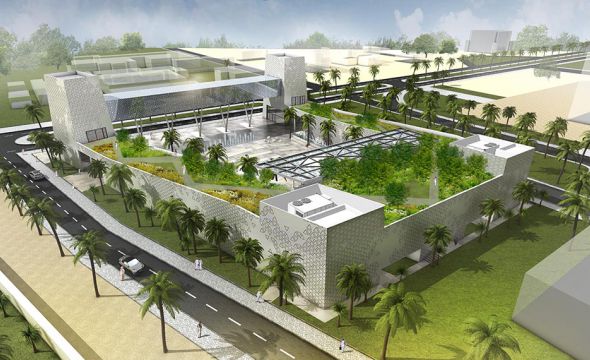 The exhibition concept leads the visitor along ramps, to view along exhibits reflecting the various aspects of Human Rights. The building itself encompasses a strategic use of lighting by interior illumination of filtered natural light by day and glowing with media screen and light features by night. The design hosts a rich organic landscape with water elements and public gardens for repose and contemplation amid the rich Janadriyah Festival.